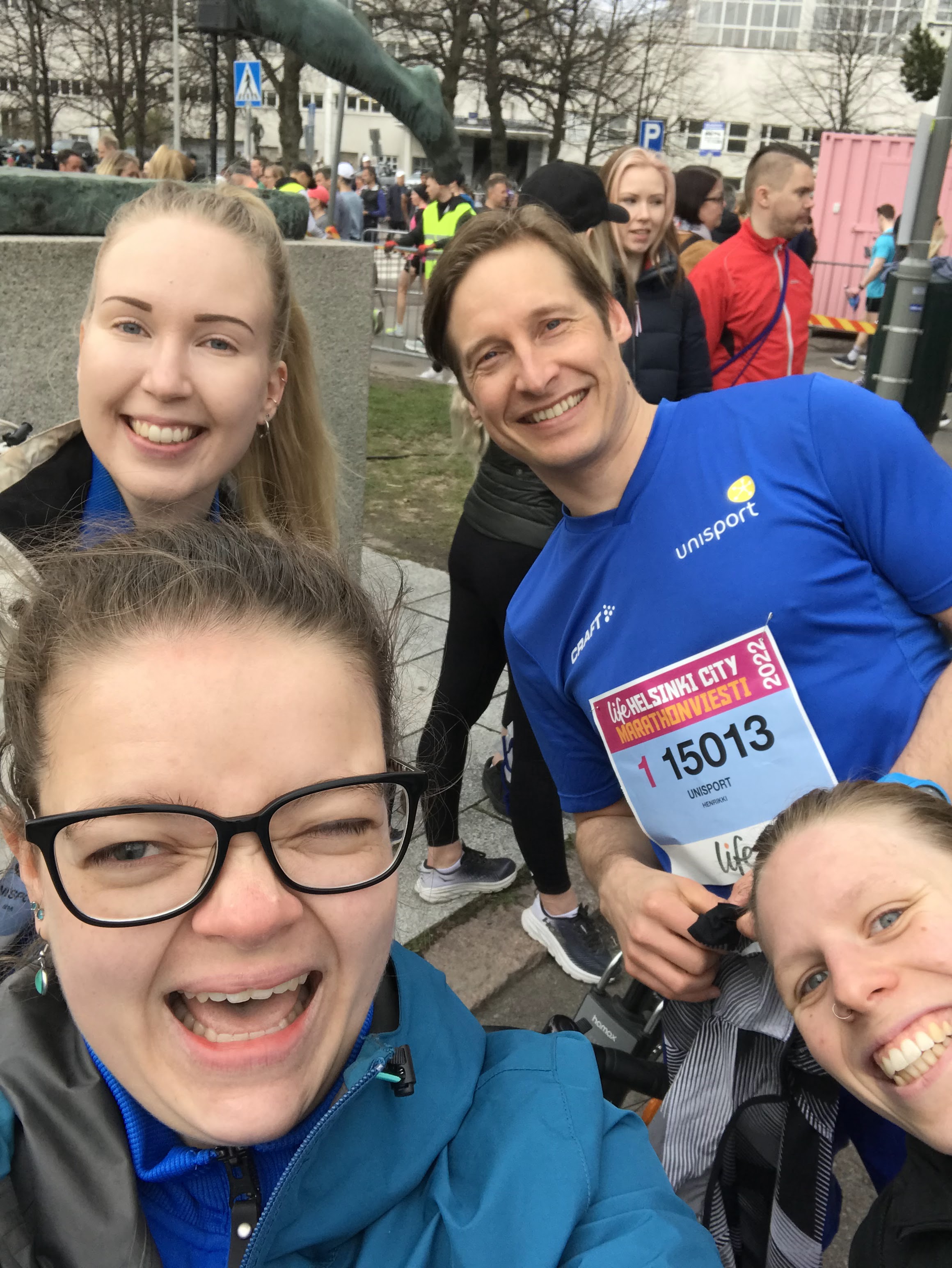 Osallistuin ensimmäistä kertaa elämässäni viestijuoksulle ja toimin myös joukkueeni pääjärjestelijänä. Melko pian sen jälkeen, kun pääsin UniSportin liikuntakeskukselle töihin pari vuotta sitten, sain idean työpaikan joukkueesta Helsinki City Running Dayn maratonviestillä. Mikäs olisi sen loogisempaa, kuin yksi pääkaupunkiseudun tärkeimmistä liikunta-alan toimijoista näkyvillä Suomen suurimmassa juoksutapahtumassa?
